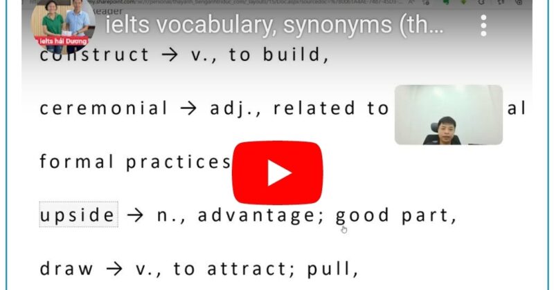 videoIelts vocabulary (ielts thay anh) tuananh605b 27/05/2023 Tags: ielts vocab Chia sẻ: Facebook Copy link